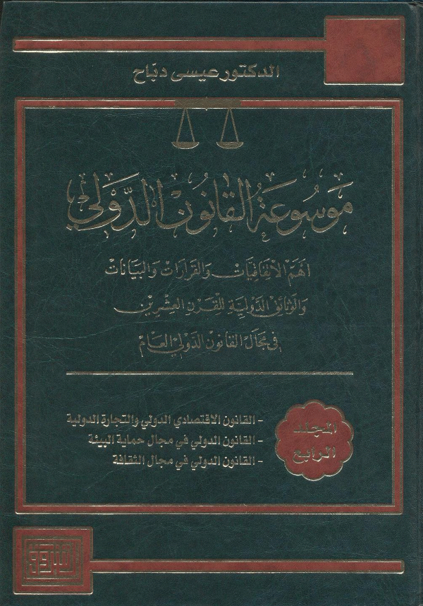 موسوعة القانون الدولي : أهم الاتفاقيات والقرارات والبيانات والوثائق الدولية للقرن العشرين في مجال القانون الدولي العام : القانون الاقتصادي الدولي والتجارة الدولية، القانون الدولي في مجال حماية البيئة، القانون الدولي في مجال حماية التراث الثقافي / عيسى دباح.