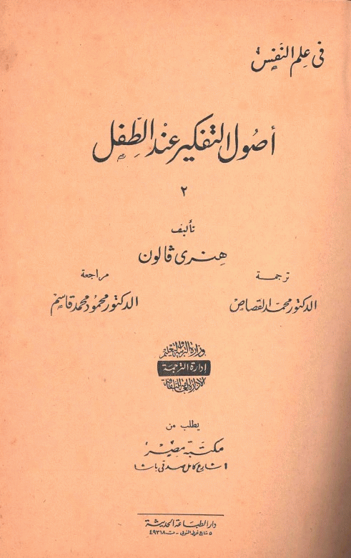 أصول التفكير عند الطفل / تأليف هنري فالون ؛ ترجمة محمد جميل القصاص ؛ مراجعة محمود محمد قاسم.